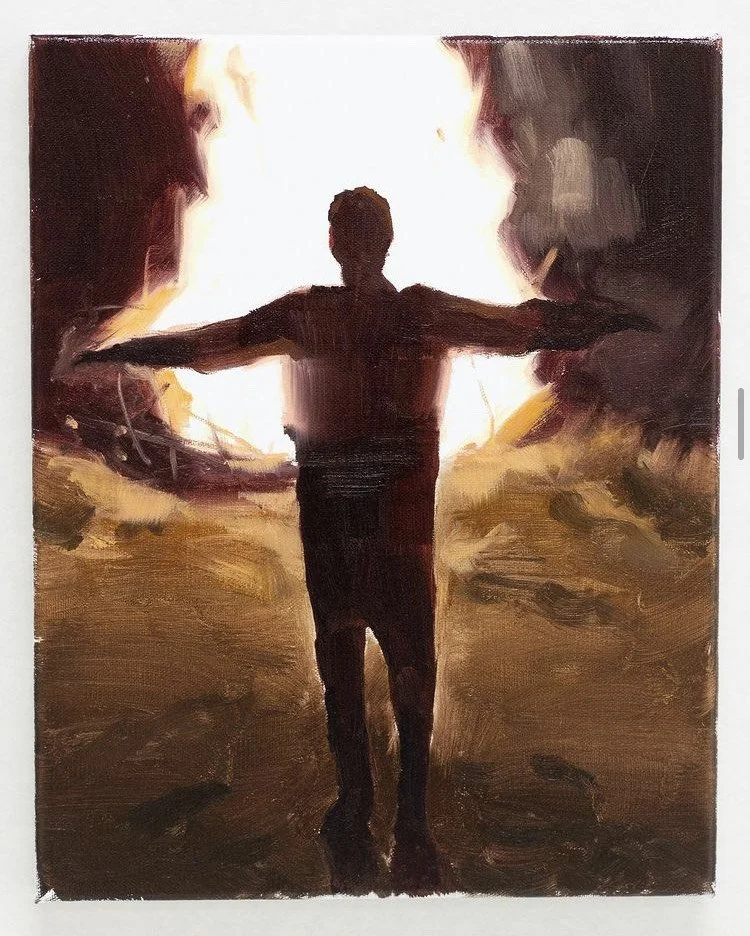 Both documentarian and iconoclast, Martinez examines internet culture through traditional painting practices, whilst scrutinizing the medium and its traditions. Martinez weighs the online image against the painted image, unpacking their inherent value systems. Adjusting his practice, he mirrors the character of his subjects and the digital spaces they inhabit. Going beyond memes, Martinez references the gamut: cursed images, niche fetish subcultures, shitpost account admins, AI generated images and appropriated UI graphics like Instagram’s “Sensitive Content” and “False Information” filters. Working prototypically and championing no particular style, the artist is able to meet his subjects on their own terms. Martinez attempts to make a redemptive case for painting's continuation as a historical and anthropological tool — painting is not dead.
